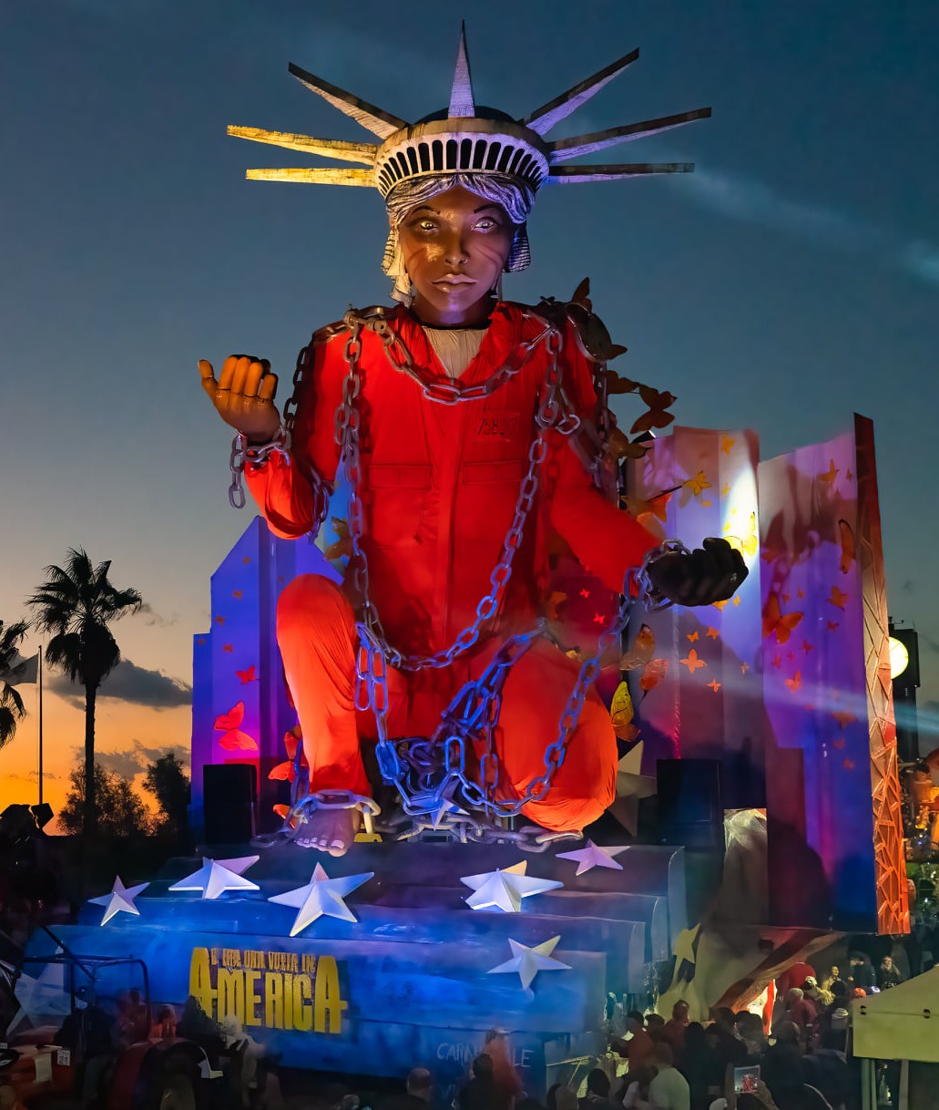 Sulla scia del movimento per i diritti degli afroamericani "Black Lives Matter", Jacopo Allegrucci presenta una donna di colore con la tuta arancione di Guantanamo che si erge come novella statua della libertà tra le catene dell'intolleranza razziale. L'America di Trump è finita ma sembra che il problema del razzismo sia ancora molto vivo e il costruttore lancia un appello perché casi tragici come quello di George Floyd non accadano mai più.