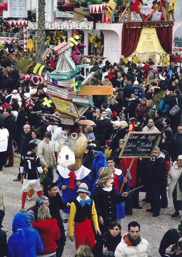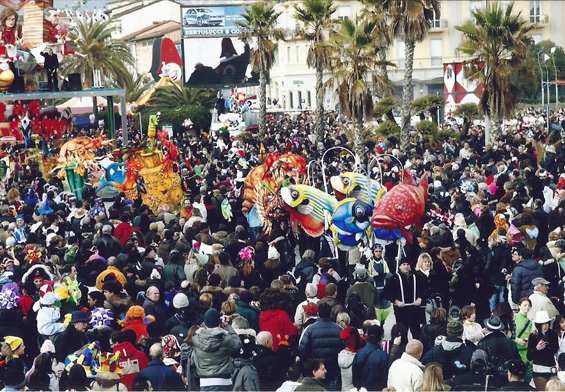 I carri vengono costruiti alla Cittadella del Carnevale e sfilano in Passeggiata (Belvedere delle Maschere).