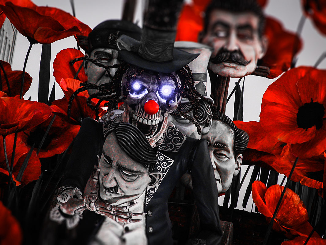 Primo successo per il duo Umberto e Stefano Cinquini che si avvalgono per la prima volta di Michele (il figlio di Umberto). Il mostro della guerra fa capolino tra i giganteschi papaveri rossi, densi di riferimenti al sangue dei milioni di combattenti morti durante il primo conflitto mondiale, di cui il 2018 rappresenta il centenario dalla fine. La morte, agghindata elegantemente, trasporta il carretto delle vittime delle sue malefatte cambiando maschera all'occorrenza: la morale è che dietro ogni grande "signore della guerra" (dittatori, papi e re) si cela sempre la cupa mietitrice.